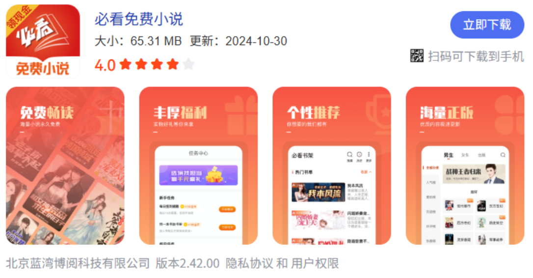 En tant que produit de base du Groupe Blue Bay, il utilise des algorithmes d'apprentissage automatique comme base technique pour construire une écologie de lecture stéréoscopique « recommandation précise + contenu diversifié + interaction sociale». Jusqu'à présent, la plate - forme a accumulé plus de 30 000 œuvres littéraires authentiques, couvrant 20 + catégories principales telles que la fiction, le discours, la Ville, etc., avec une moyenne quotidienne d'utilisateurs actifs dépassant les 8 millions, trois années consécutives, la satisfaction des utilisateurs de l'Android app store Top3, devenant L'un des principaux produits dans le domaine de la lecture gratuite dans le pays.